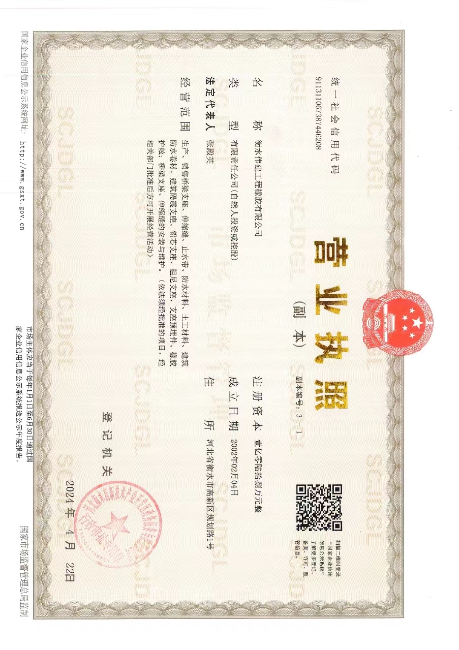 我公司是專業生產工程橡膠制品和交通設施配套產品的廠家。其主導產品生產、銷售、安裝、維護橋梁支座、伸縮縫、止水帶、防水材料、土工材料。建筑防水卷材、建筑隔震支座、鉛芯支座、阻尼支座、支座預埋件、橡膠護舷;橋梁支座、伸縮縫的安裝與維護。被廣泛應用在公路各種橋梁大型工程項目上。如成渝鐵路客運專線、麗攀高速、張承高速、三淅高速、安平高速、以及正在建設中的京沈鐵路客運專線、棗潛高速、…